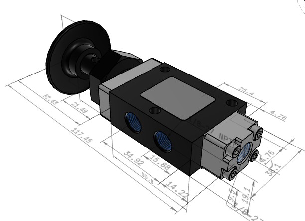 50 Series, 3 way, 1/8″ Side Ports with Panel Mounting, Palm Button/ Pilot